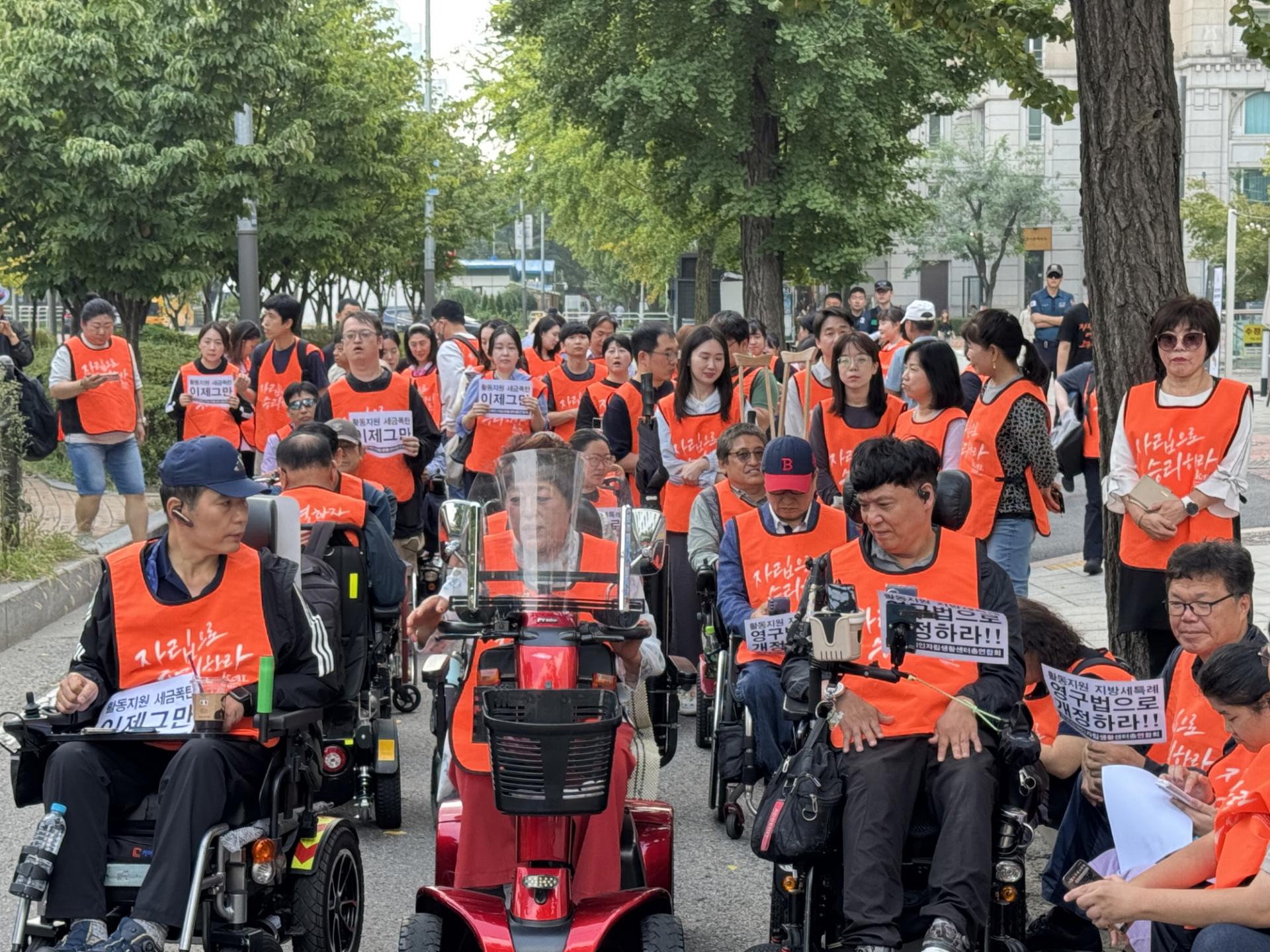 우리 센터에서는 2025년 10월 1일 한국장애인자립생활센터총연합회가 주최하는 장애인활동지원 지방세특례 영구법으로 개정하라!! 기자회견에 참석 하였습니다.